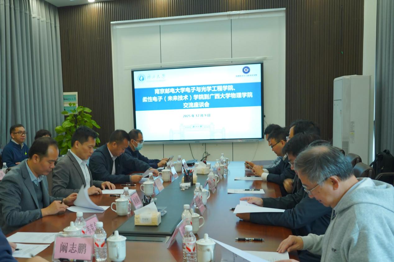 蒋津辉首先对余林蔚一行的到访致以诚挚欢迎。他指出,广西大学物理学院与南京邮电大学电光学院的学科领域契合度高,具备广阔的合作前景,期待双方能够互学互鉴、优势互补,在学科建设提质、人才联合培养等领域开展务实合作,携手提升办学品质与育人实效。同时,他也对自治区科技厅长期以来给予学院物理学科的高度关注与大力支持表示感谢,正是得益于这份助力,学院学科建设实现了跨越式发展。