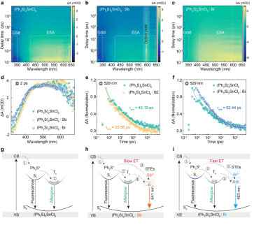 室温磷光材料在信息加密中具有重要的应用前景,但是其能量传递过程和发光机制仍然不清晰。我们通过将ns2金属离子引入零维有机-无机杂化金属卤化物(Ph3S)2SnCl6中,构建了从S1和Tn能级到STE的能量传递过程,从而实现了对能量传递过程和磷光性能的精确调控。该材料表现出STE荧光-磷光双模光学特性,并具有不同的余辉时间,可用于开发高性能的时间分辨加密系统。飞秒瞬态吸收测试表明,从S1到STE的能量传递速率对长余辉材料的时间分辨特性具有显著影响,该材料在时间分辨加密中具有重要应用前景。