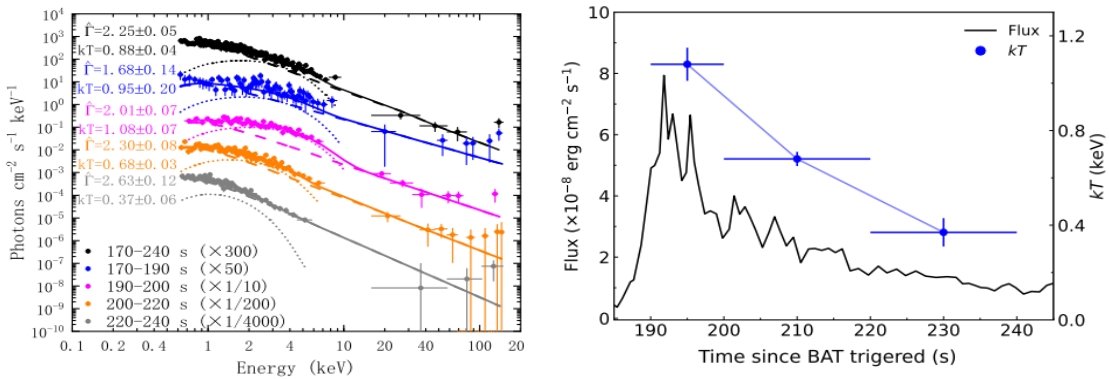 2GRB 170519A 的谱(左)和黑体温度的演化(右)