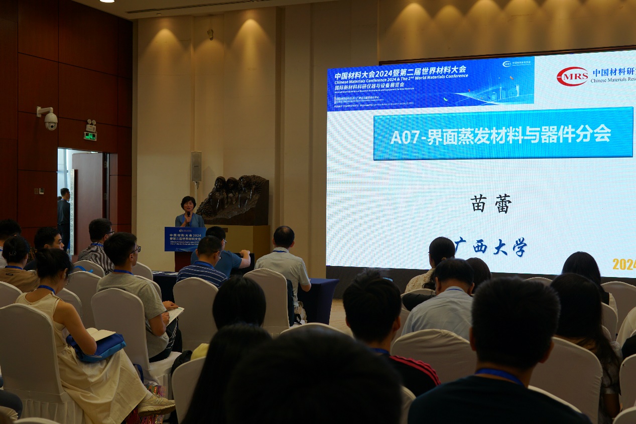 The China Materials Conference 2024 and the 2nd World Materials Conference were successfully held in Guangzhou from July 8th to 11th, 2024. As an annual event of the Chinese Society for Materials Research, the "China Materials Conference" is a top academic event in the field of new materials in China, attracting over 10000 experts and scholars with its extensive disciplinary coverage and latest cutting-edge developments. The A07 Interface Evaporation Materials and Devices Branch of this conference is hosted by the Chinese Society for Materials Research and co organized by Guangxi University, Northeastern University, Nanjing University, Hainan University, and Guilin University of Electronic Science and Technology. It focuses on cutting-edge technologies and major national needs, and is committed to promoting innovation and development in the field of new materials.